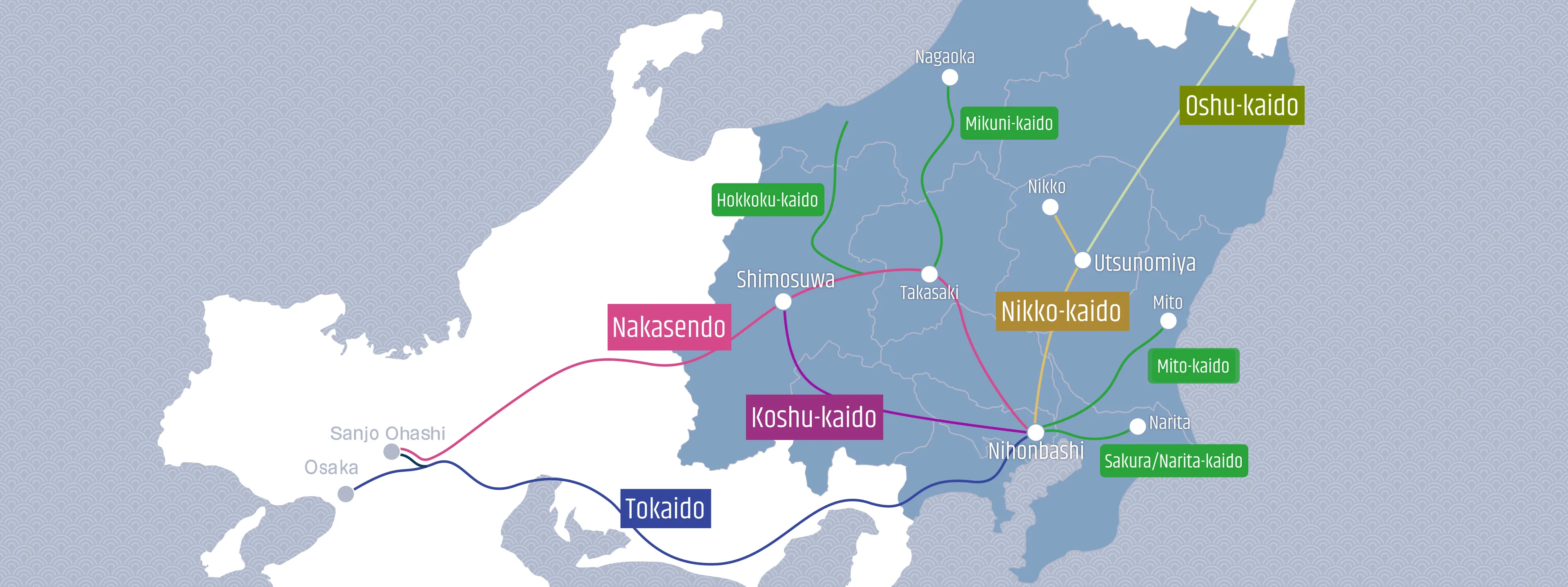 Did the Edo shoguns govern the country not through castles, but through roads? A key to answering this question lies in the Edo Shogun Roads (Edo Kaido), a network of highways developed during the Edo period. Radiating outward from Edo (present-day Tokyo), this major road system was established under the leadership of Tokugawa Ieyasu, the first shogun of the Tokugawa shogunate, as a transportation framework linking Edo with regional domains across Japan. All routes began at Nihonbashi, the official starting point of the road system at the time. At the core of this network were five major highways, including the Tokaido and the Nakasendo, which, together with branch routes such as the Mito Kaido and the Narita Kaido, formed the foundation of transportation in the period. The total length of this road system is estimated to have reached about 7,000 kilometers (about 4,350 miles), consisting of about 1,575 kilometers (around 979 miles) for the Five Major Roads and roughly 3,500 kilometers (about 2,175 miles) for the principal branch routes. Along these roads, shukuba (post towns providing rest and lodging for travelers) and sekisho (inspection checkpoints that regulated traffic) were established, supporting governance, official movement, and the system of sankin kotai, which required daimyo to alternate their residence between Edo and their home domains. Many of these historic roads later became the basis for modern national highways and continue to offer important insights into Japan’s regional history and culture today. Their practical use can still be glimpsed in the remains of post towns and checkpoint sites that survive along the old routes. From these traces, it is possible to sense how the roads functioned as political and logistical arteries linking Edo with the domains, and how travelers moved from one post town to the next, resting, eating, and staying overnight as they continued their journeys along the highways of the period.