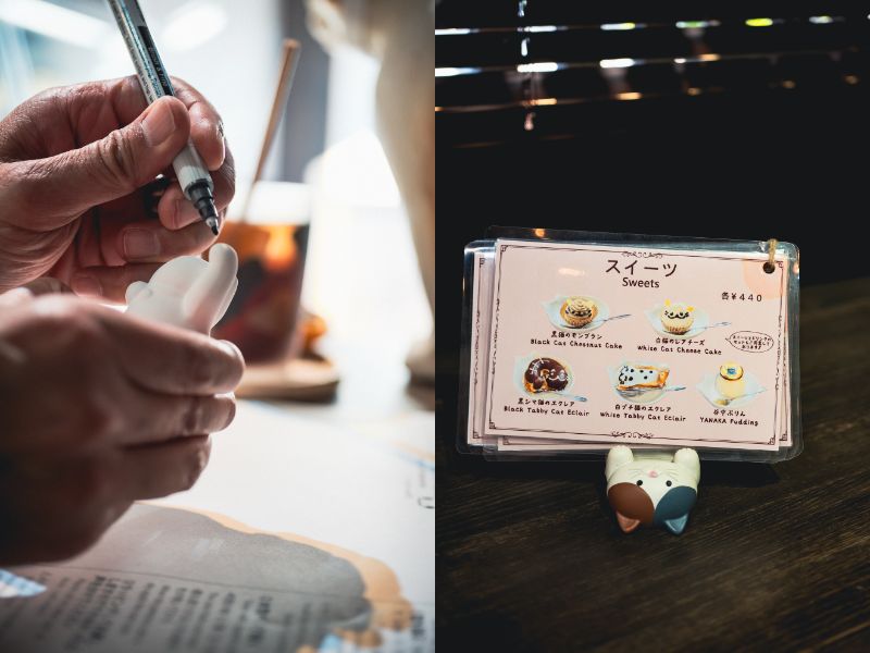 The café uses water-soluble pens instead of traditional brushes and pigments, keeping the process easy for everyone. Small groups or solo visitors can work at their own pace, playing with patterns on the ceramic surface. Staff members are on hand to explain maneki-neko symbolism and wrap finished pieces carefully so that they survive your trip home.