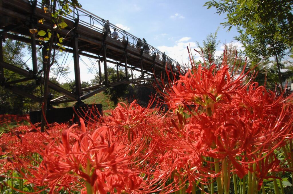 Hidaka City’s Kinchakuda Manjushage Park is home to some 5 million bright red spider lilies that burst into bloom every autumn.