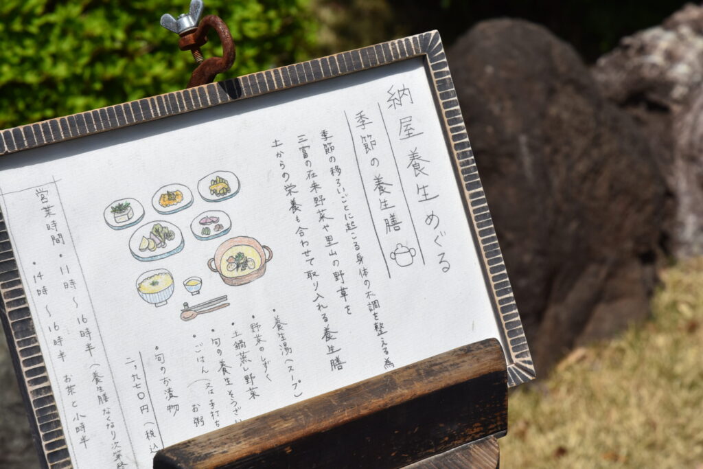 The menu at Naya Yojo MEGURU features seasonal vegetables grown on the farm by local farmers, as well as unique herbal tea blends, delicious dashi broth, homemade udon and more.