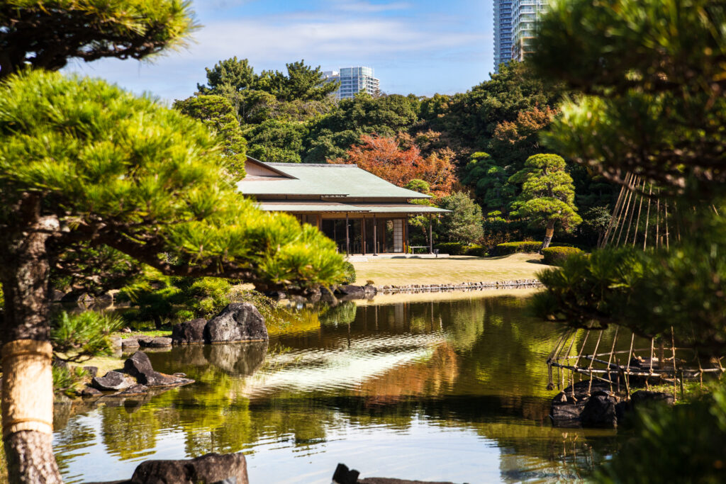 Beyond the scenery, Mihama-en offers an authentic taste of Japanese tradition at the Shorai-tei tea house. There, visitors can savor seasonal wagashi (Japanese sweets) from a venerable Chiba confectioner paired with premium matcha from a renowned Kyoto tea merchant, all while enjoying panoramic garden views.