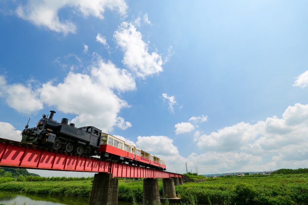 Running between Goi Station and Yoro Keikoku Station, the Satoyama Torocco offers a refreshingly unhurried way to explore Chiba's scenic countryside. This charming sightseeing train crawls along at just 25 km/h, pulled by a DB4-type locomotive—a reproduction of a historic steam locomotive now powered by a clean diesel engine. The atmosphere aboard is all the more authentic, as the original Taisho-era whistle still echoes through the valleys, connecting passengers with Japan's railway heritage.