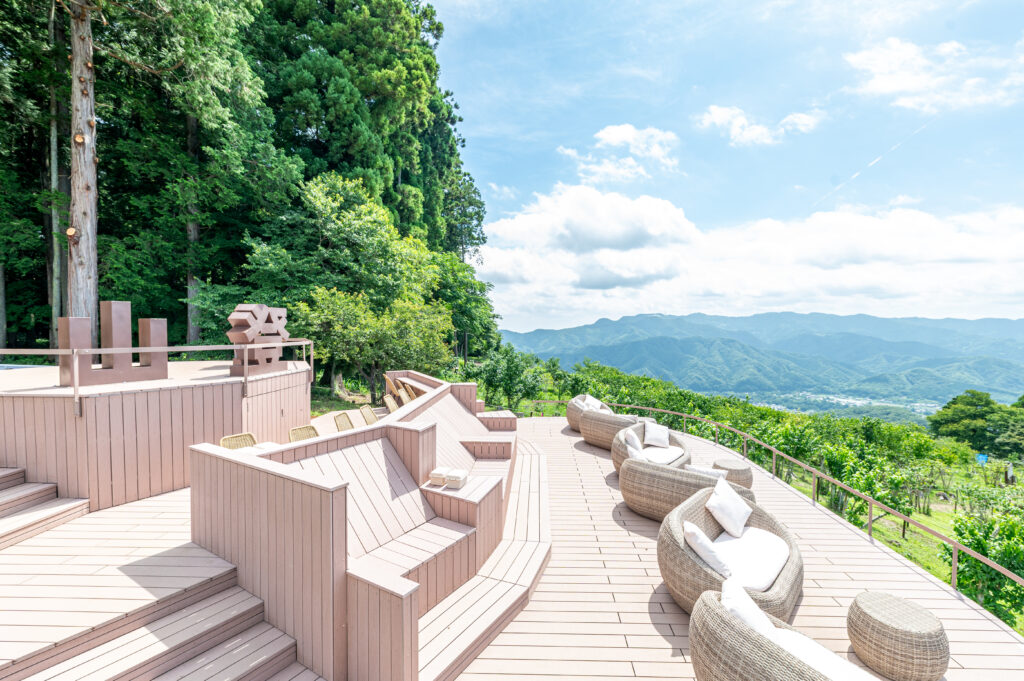 A mountaintop terrace inviting visitors to relax and savor Chichibu’s scenery