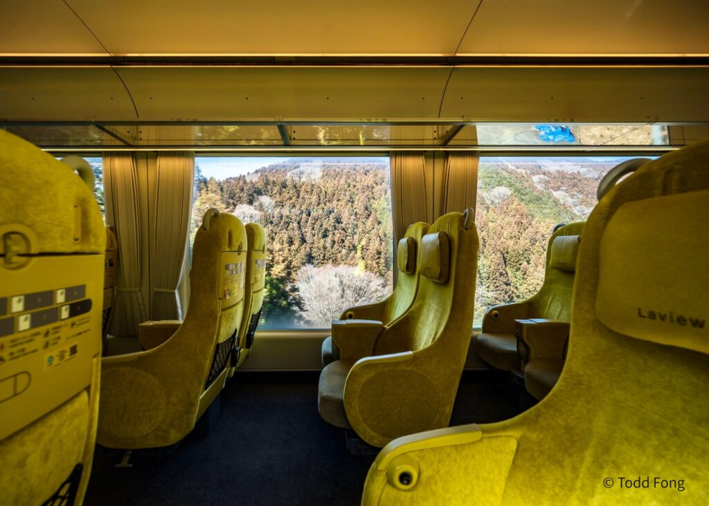 In addition to running in high-speed, Laview aims to enhance the overall traveler experience Departing from Ikebukuro and moving toward the Chichibu mountains, travelers can take delight in the transition from dense urban streets to rivers, forests, and open skies–the large windows allowing passengers to observe these transitions comfortably from their own seats. Making its way toward the temples and natural landscapes of Chichibu, Laview’s smooth ride, spacious interior, and panoramic views make the journey itself a part of the exciting destination.