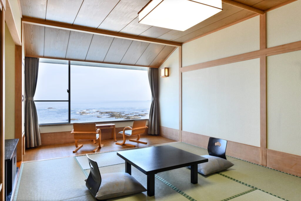 Beyond the spectacular natural scenes, Oarai Hotel has a lot to offer, including spacious, light-filled rooms with both western and Japanese décor, public baths with sweeping ocean views, and an on-site restaurant offering breakfast overlooking the beach.