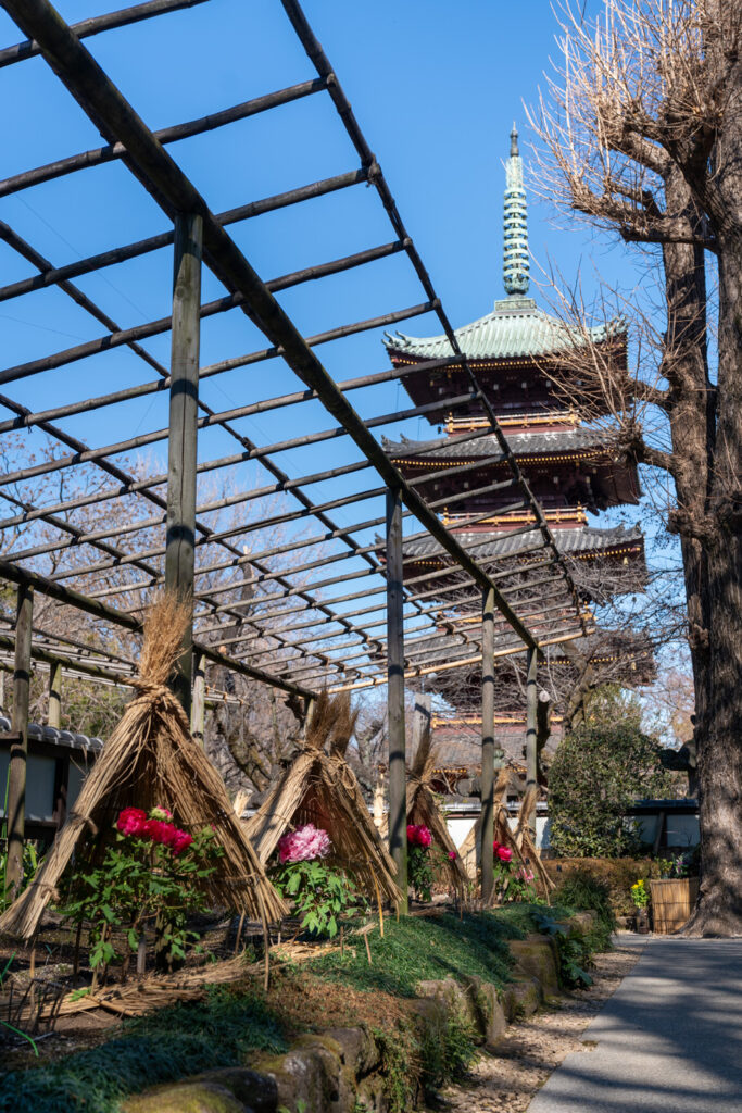 Within the same precinct of the shrine lies the Ueno Toshogu Peony Garden, a strolling-style Japanese garden that adds a touch of nature to the historical site. Established in 1980 to commemorate the friendship between Japan and China, the garden offers stunning displays of seasonal flowers throughout the year. In spring, you can admire around 500 peony plants representing 110 varieties that bloom in vivid colors, while winter brings 160 plants of 40 varieties carefully protected under straw huts (warabocchi) to withstand the cold. In autumn, visitors can admire 200 dahlias of 100 varieties, protected under the shade of Japanese umbrellas. Walking through the garden, you'll enjoy the beauty of flowers set against traditional Japanese architecture, feeling the atmosphere of the Edo period with the five-storied pagoda and lanterns.